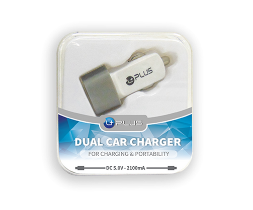 The car charging adapter can rapidly charge two devices simultaneously. It works with most smartphone devices. The charger offers a 2.1 AMP output for a fast charge. The adapter fits comfortably in most automobile auxiliary power outlets.