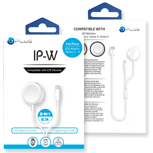 The IPW is a 2 in 1 charger for your smartphone device and iOS watch. It can charge both devices simultaneously in a short time. It is compatible with IP 7 and up and all iOS watch Series. No need for multiple cables. Just plug into a USB charging adapter.